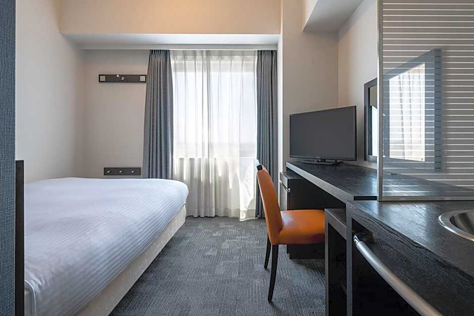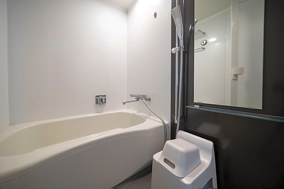 The room features a double bed (55 in wide) and has refrigerator. The private bathroom includes amenities and a hairdryer.